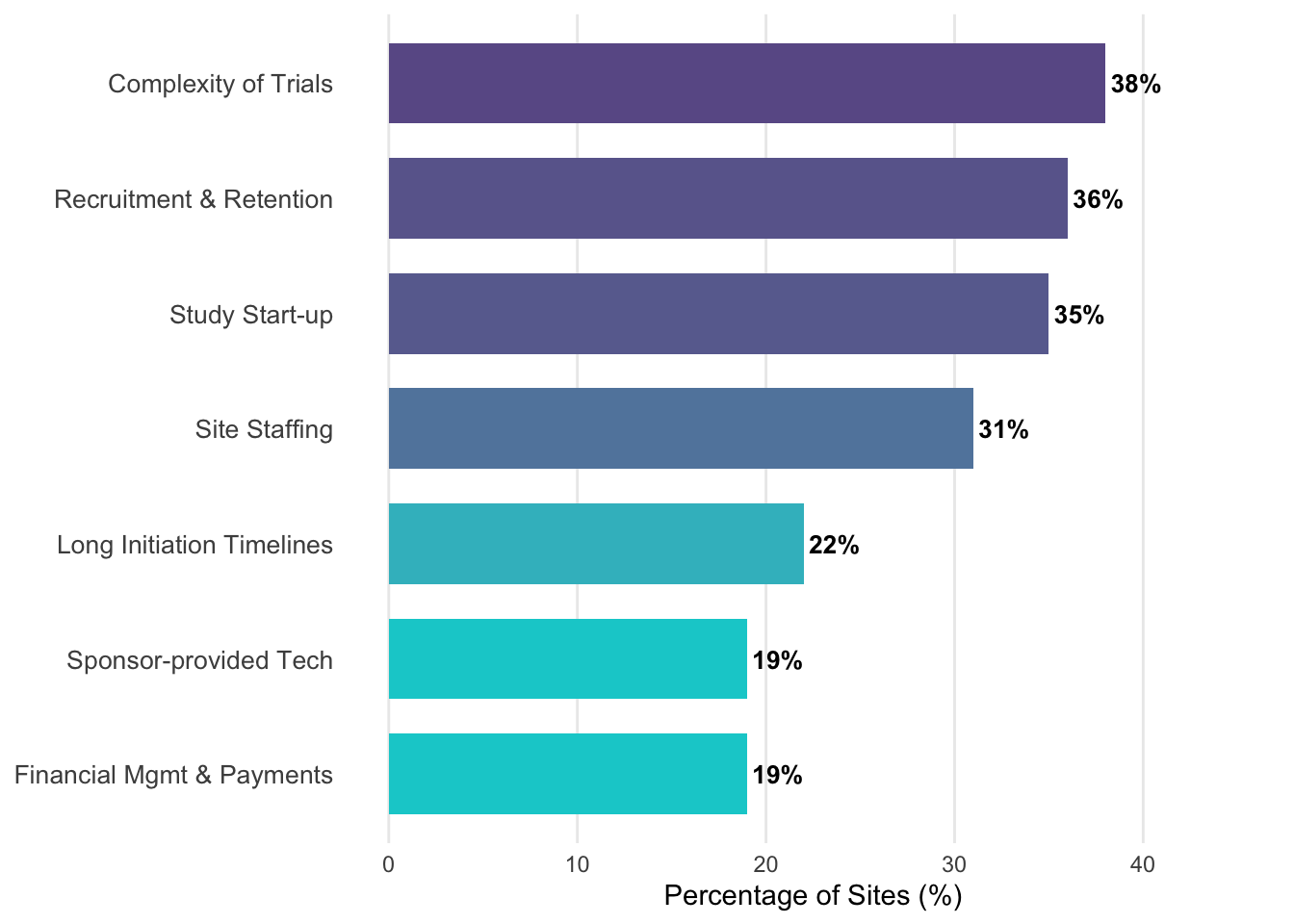 In response to these pressures, sites are implementing various strategic solutions. As shown in Figure 17.1, while hiring additional staff (42%) and prioritizing training (36%) are common, many sites are also electing to participate in fewer studies (27%) or selecting trials with less complex designs (21%) to maintain operational viability.
