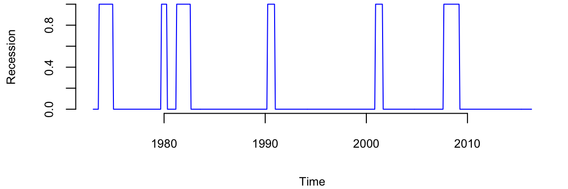 rec = ts(dat$nber, start=c(1973, 1), end=c(2016, 5), frequency=12)